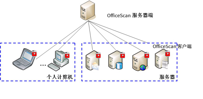 · 在学校师生的计算机和服务器上部署OfficeScan客户端,主要用于完成对病毒的查杀,并向安装在专用防病毒服务器的OfficeScan服务器报告,进行集中管理。